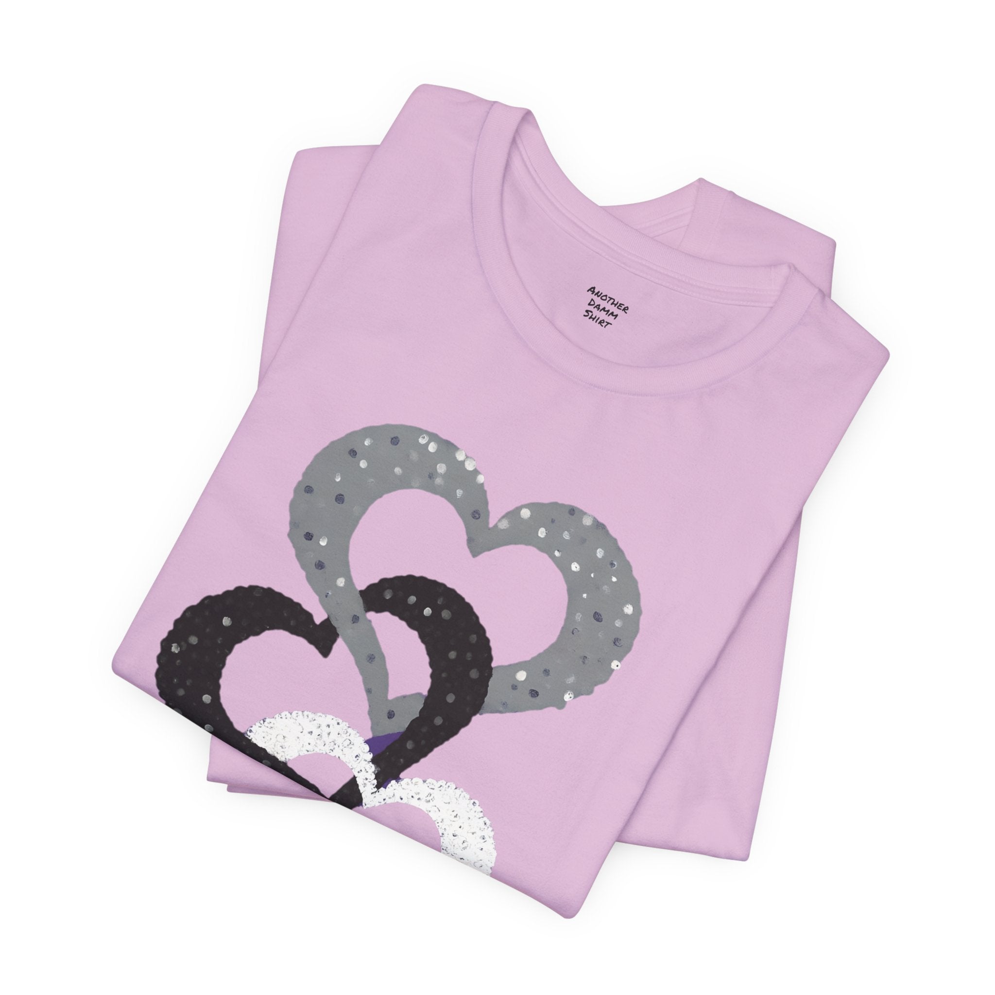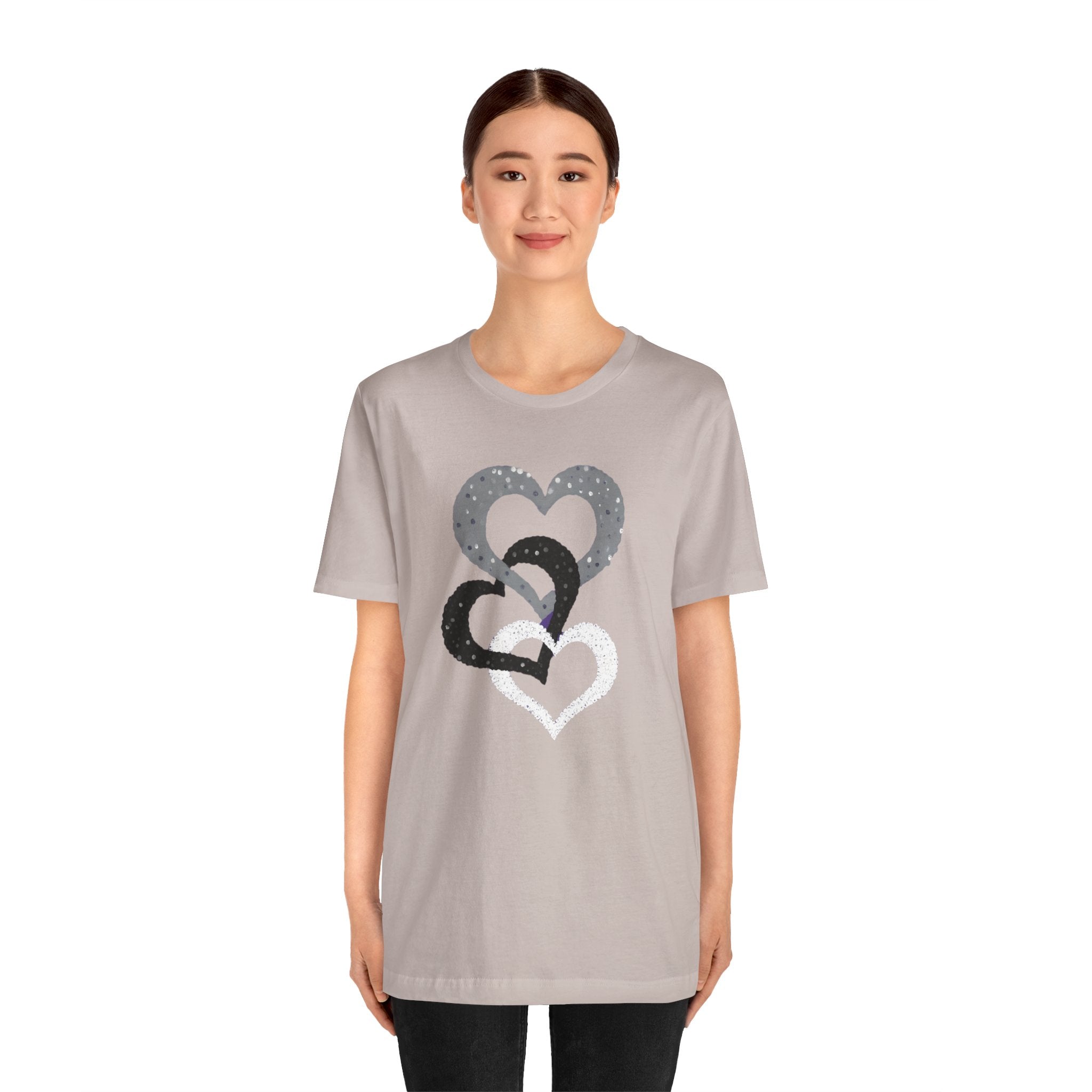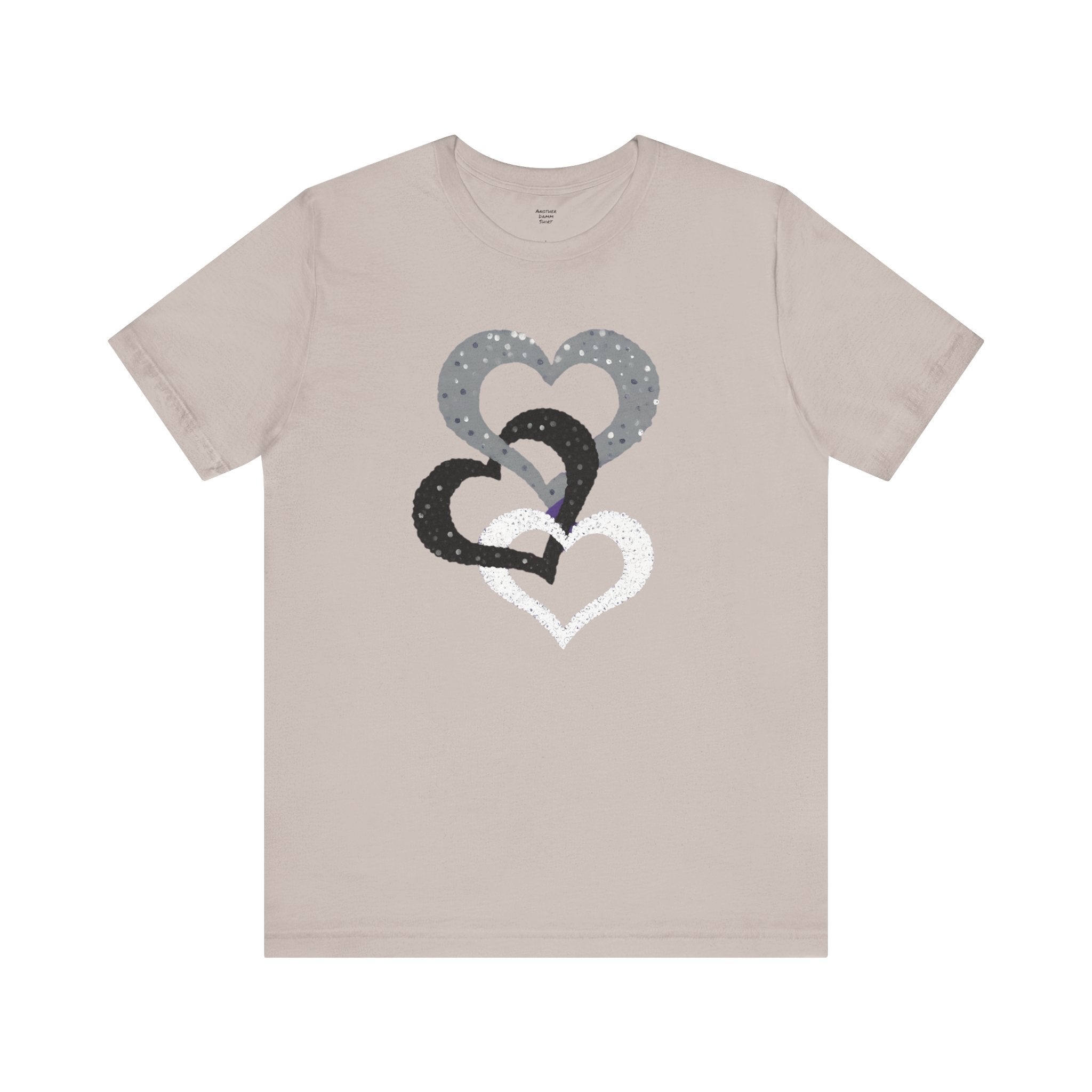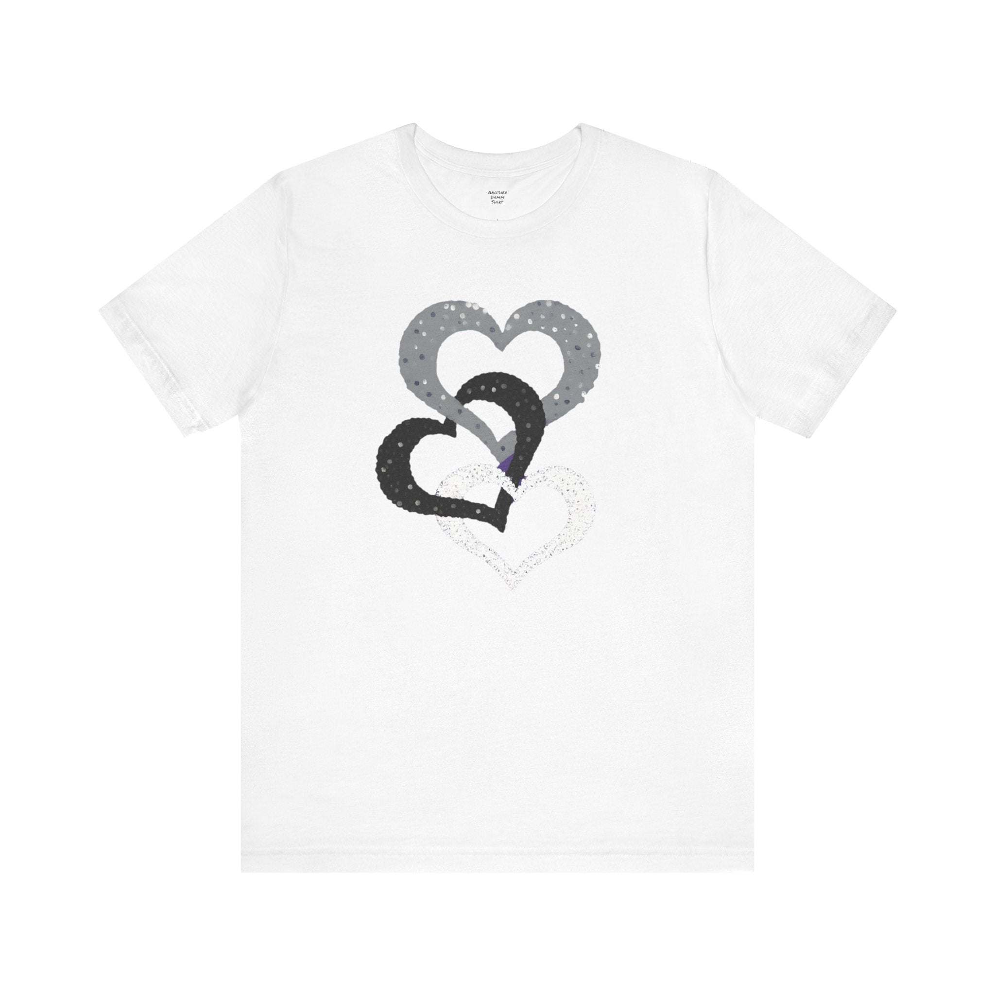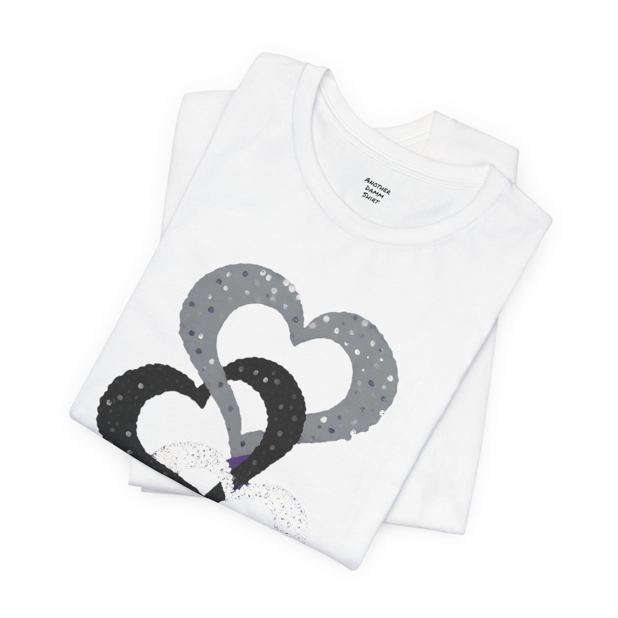Love in Layers: Unisex Heart Design T-Shirt, perfect for casual wear and a great gift for her. This tee is ideal for Valentine's Day or everyday wear, giving off a casual and loving vibe. Suitable for adults.