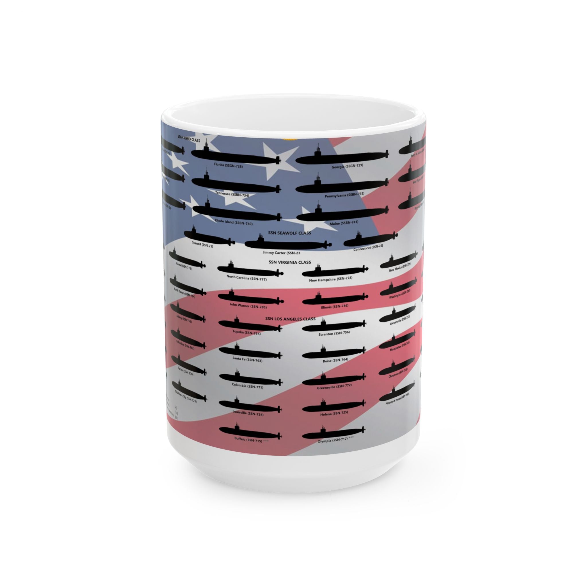 Nautical Pride Ceramic Mug - United States Navy Submarine Design (11oz & 15oz) The Silent Service, Pride Runs Deep. This ceramic mug is perfect for Navy veterans, active duty service members, or anyone who loves nautical themes. Great for sipping on coffee or tea while showing your support and pride for the Navy. Suitable for daily use or as a gift for special occasions like Navy Day or Veteran's Day.