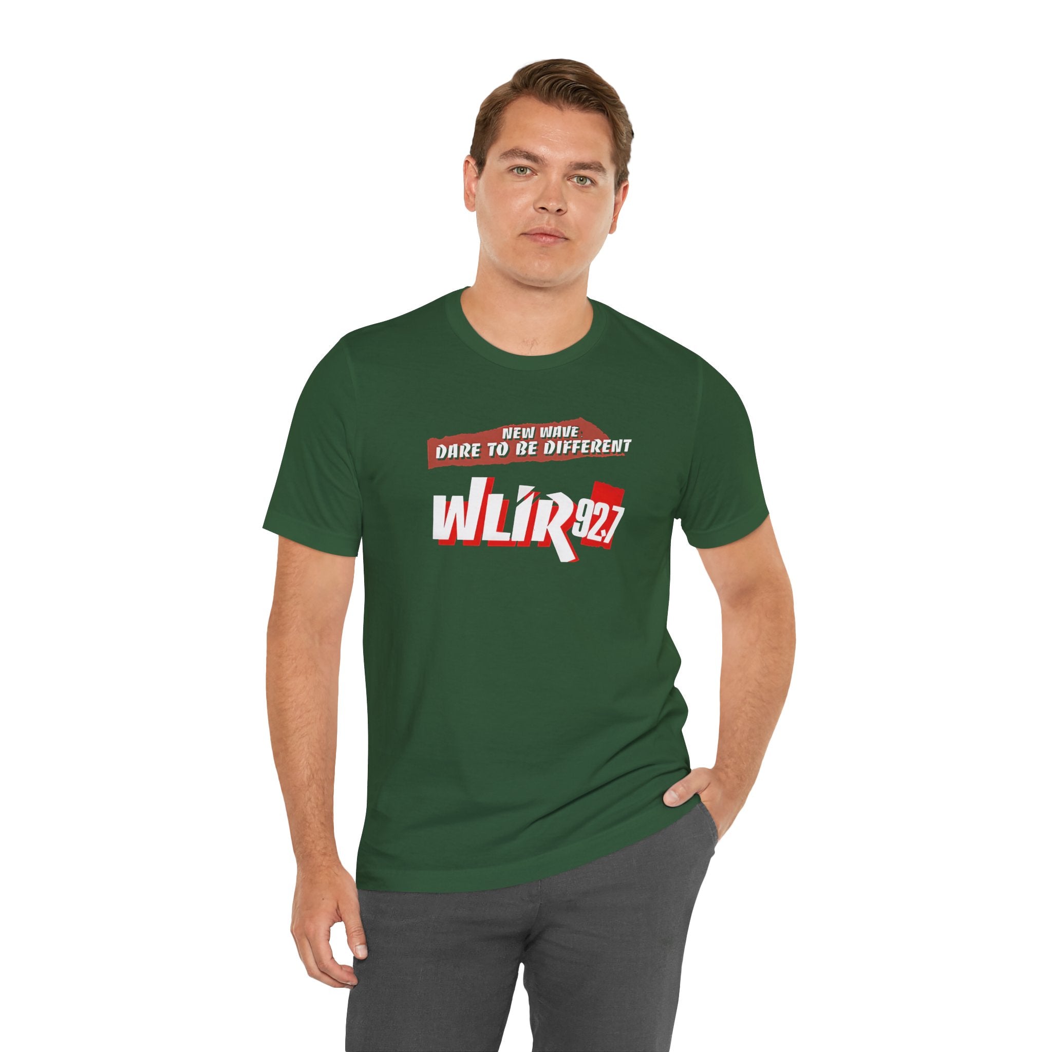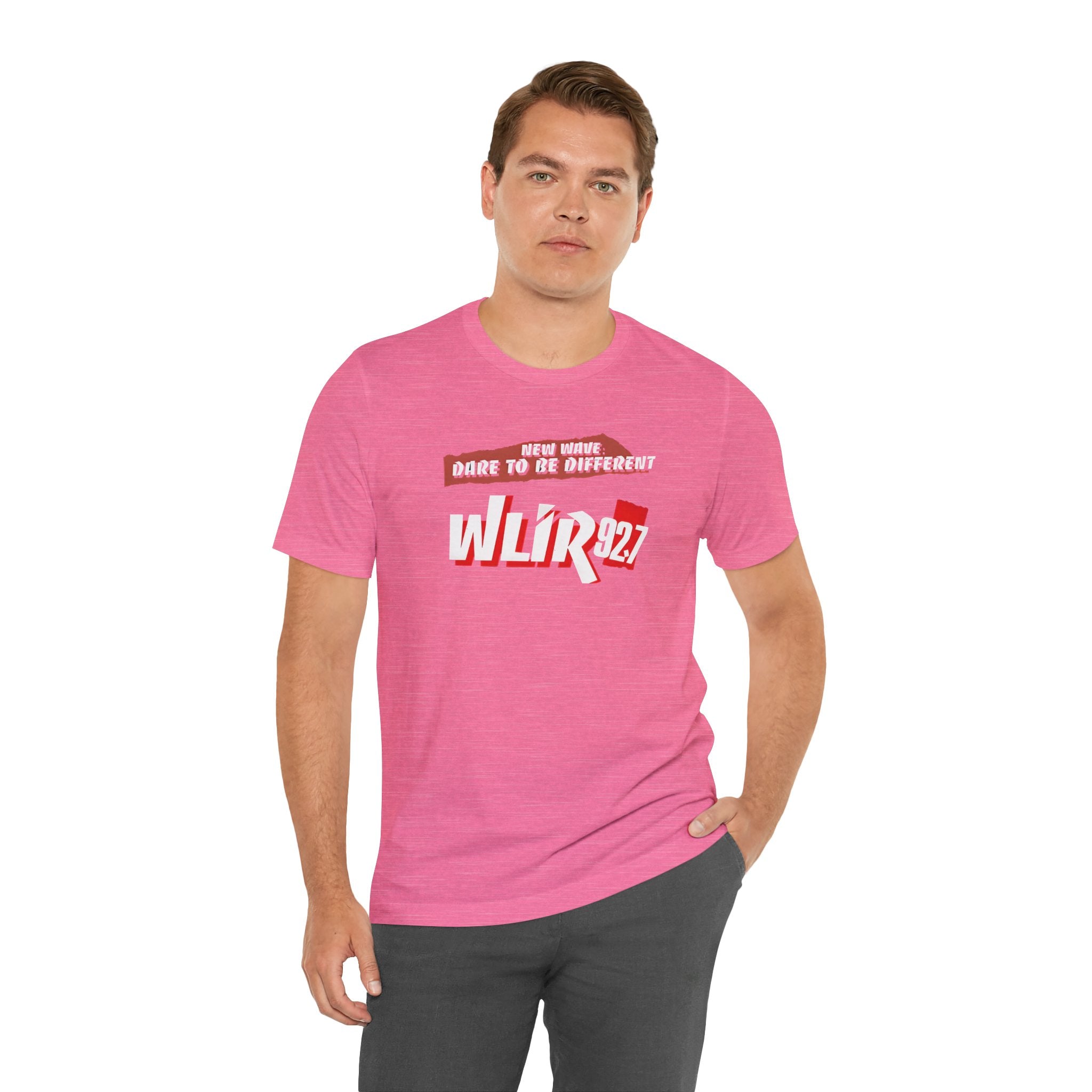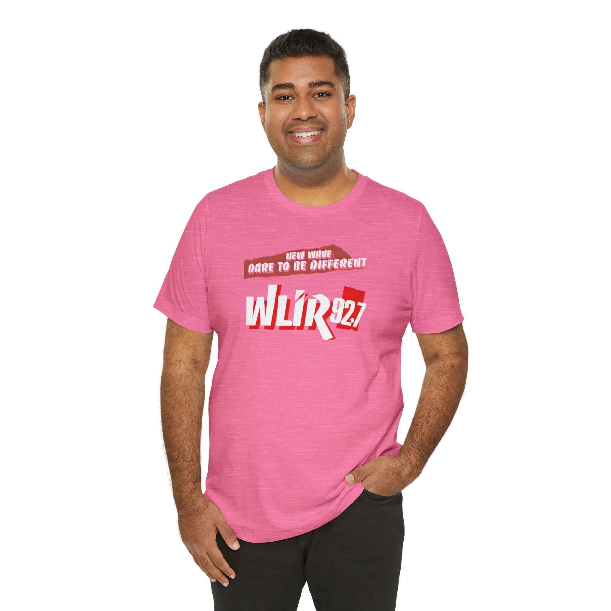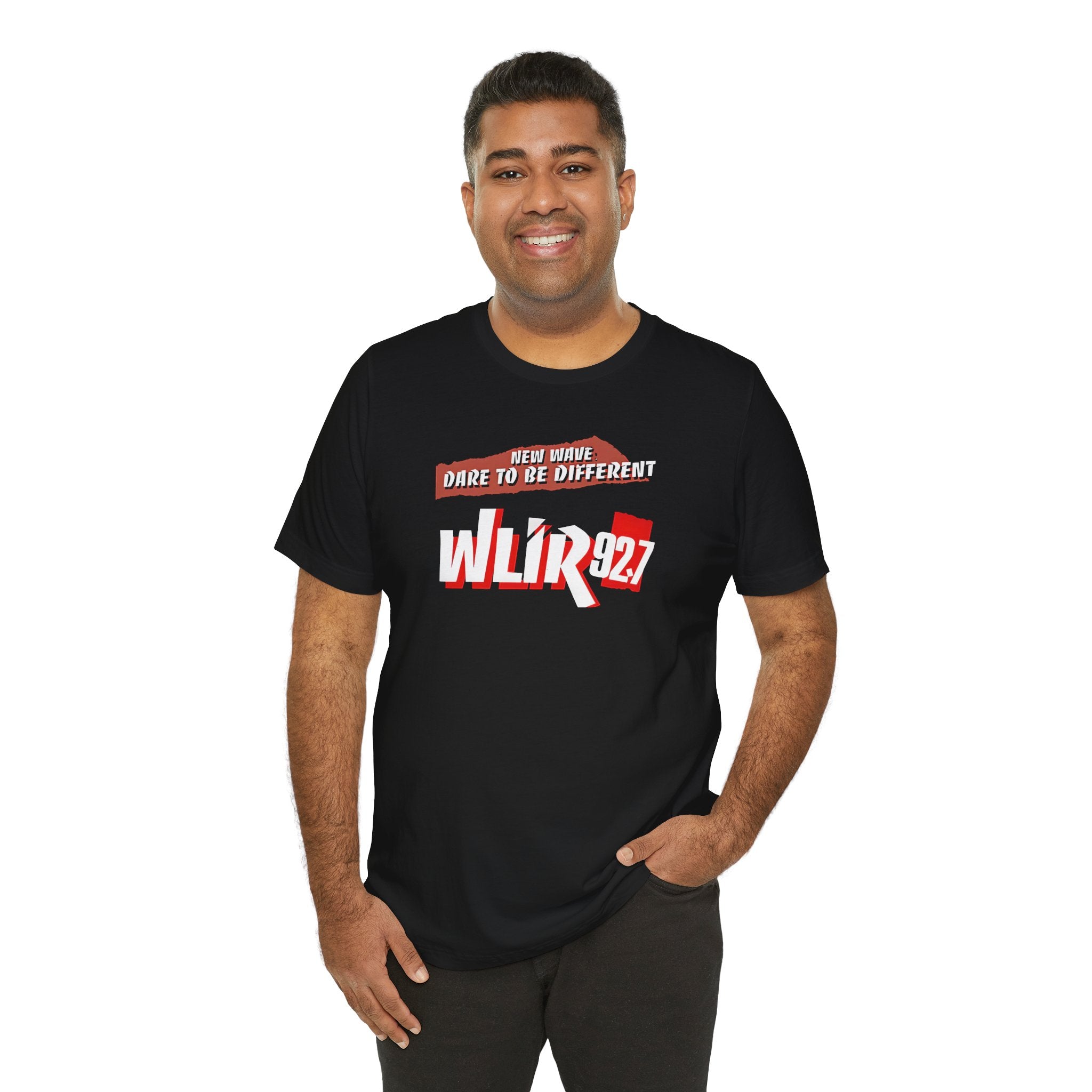 Vibrant Radio Station WLIR Long Island T-Shirt, New Wave Unisex Short Sleeve Tee. Perfect for music lovers looking for alternative rock casual wear. Ideal for summer fashion and festival outfits. Relevant for music-related holidays and celebrations.